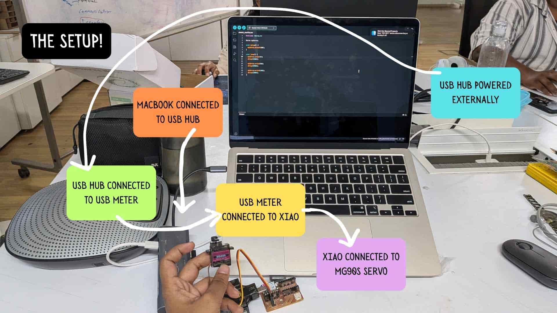 XIAO sends PWM signal → Servo receives it → Arm moves to 90°