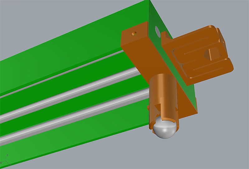 One interesting aspect of this design is that part of the Y axis becomes suspended during its movement. To solve this, the original 2020 design included a mobile support system based on small balls, inspired by the educational robot Escornabot. This system provides support when the Y axis reaches the extreme positions of its travel, adding stability without restricting movement.