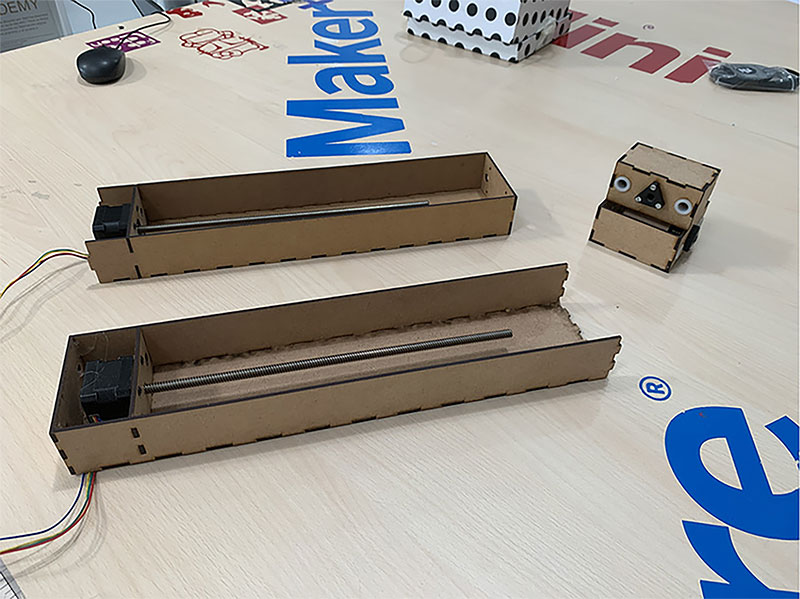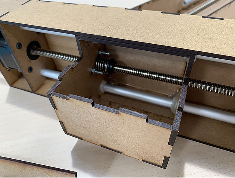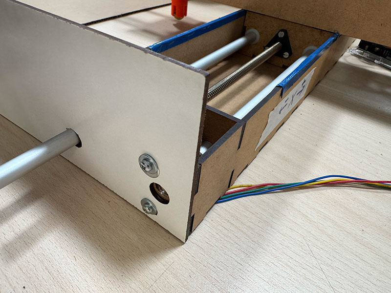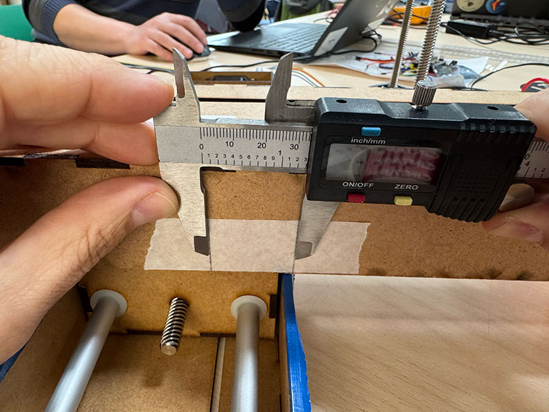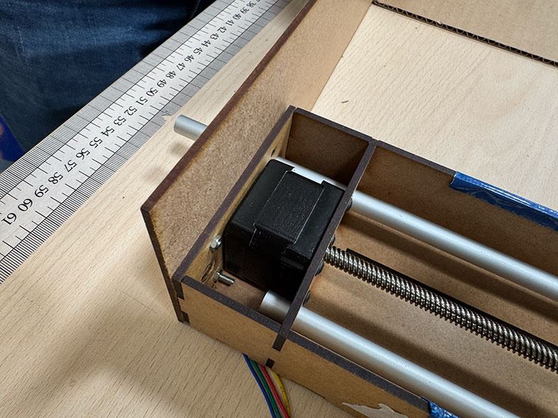 Once we obtained the correct measurements, we moved on to fabricating the parts using 3 mm MDF. However, after assembling the structure, we quickly realized that it did not provide enough stability. The material flexed too much, and the lack of rigidity negatively impacted the behavior of the axis, especially during movement.