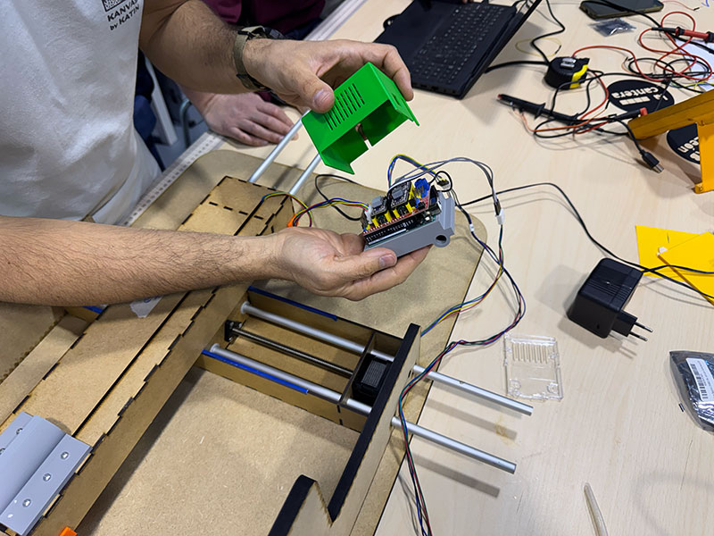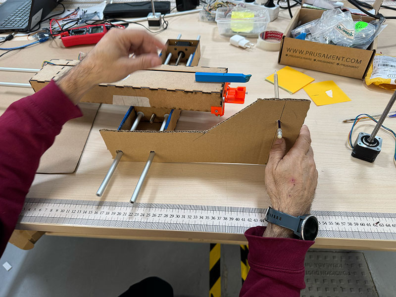 In terms of teamwork, although all of us were globally involved in the project, following and contributing to every stage, we also divided some tasks in order to optimize time. This allowed us to move forward in parallel on different areas such as design, fabrication, and electronics, while maintaining a shared vision of the project and ensuring the active participation of all team members across all areas.