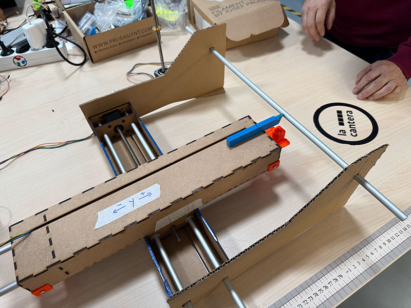 Starting from that reference, our goal was not simply to replicate it, but to evolve and improve some of its parts, adapting the machine to our needs and to the resources available. At the same time, we wanted to document the whole process as completely as possible, making sure we understood each decision we took during the development.