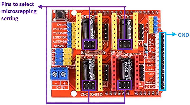 Before running the motors, it is essential to properly adjust the current limit of the drivers through the reference voltage (Vref). This step is critical both to protect the motors and to avoid damaging the drivers.