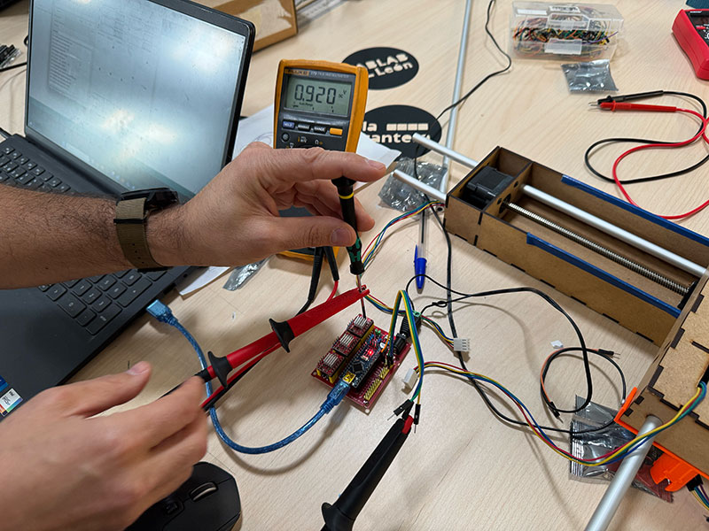 Instead, following the DRV8825 relationship, a current of 2.0 A would correspond to a Vref of approximately 1.0 V. In practice, we adjusted this value taking into account the real limitations of the system and its thermal behavior, keeping the configuration within a safe operating range.