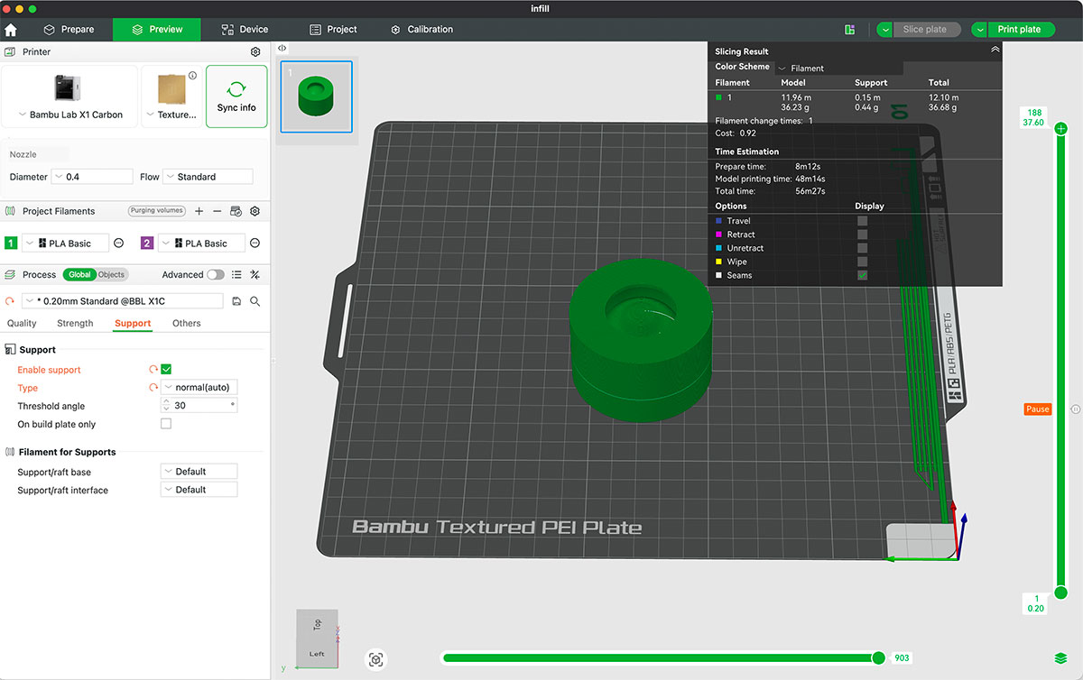 - Infill: Grid 15%