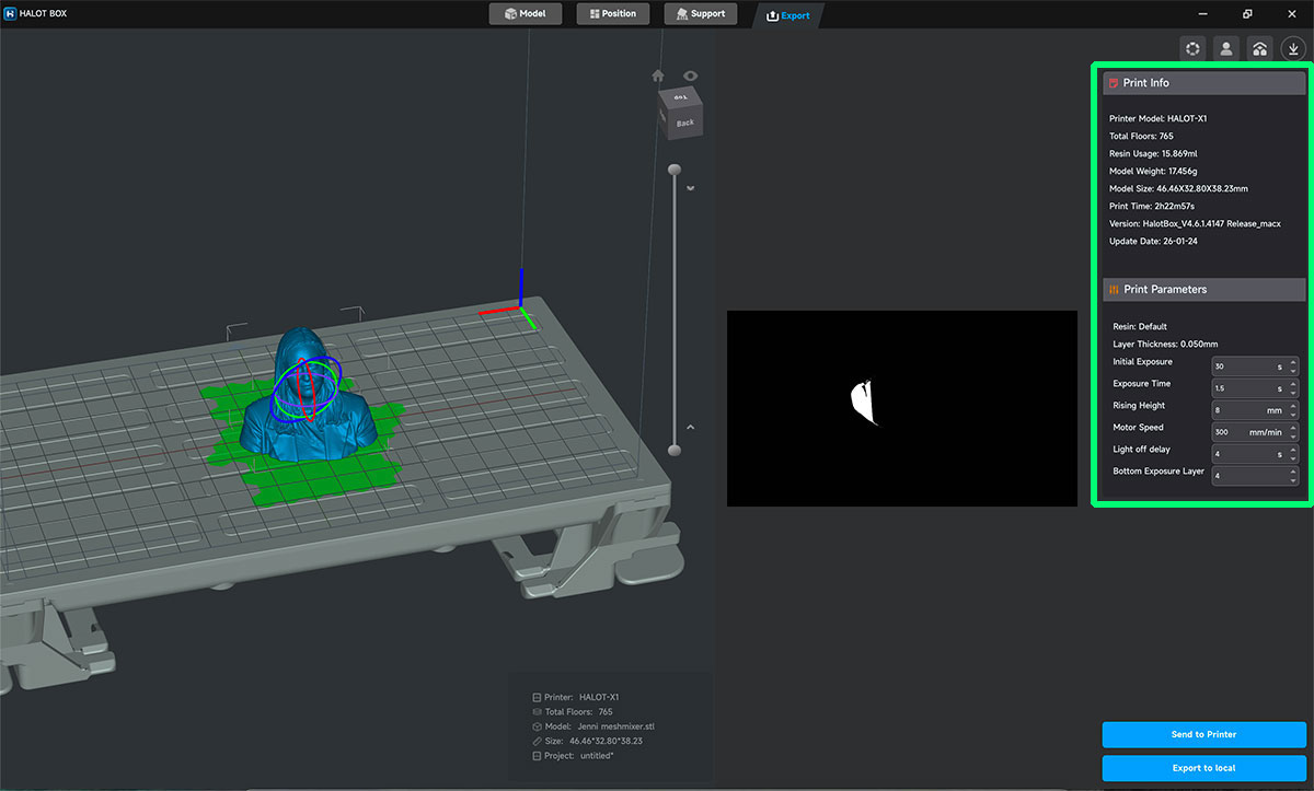 To prepare the print, I use Halot Box, the dedicated slicing software for the Creality HALOT-MAGE PRO 8K.
