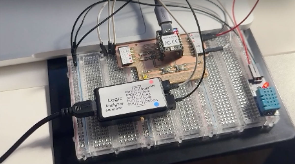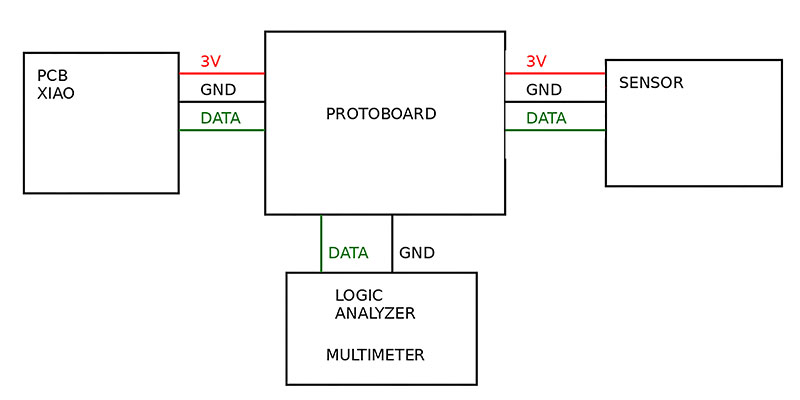 Once I verified that the sensor was working correctly at the software level, the next step was to check how that data was being transmitted at the physical level. Since we do not have an oscilloscope in the FabLab, I used a multimeter and a logic analyzer to study the signal.