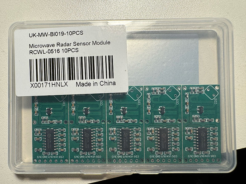 Unlike the previous sensors, this one was not included in the Arduino starter kit. In this case, I bought a pack of 10 RCWL-0516 modules on Amazon for around €9, with the intention of testing them and comparing their behavior with the MH-Sensor-Series motion sensor that I had used before.