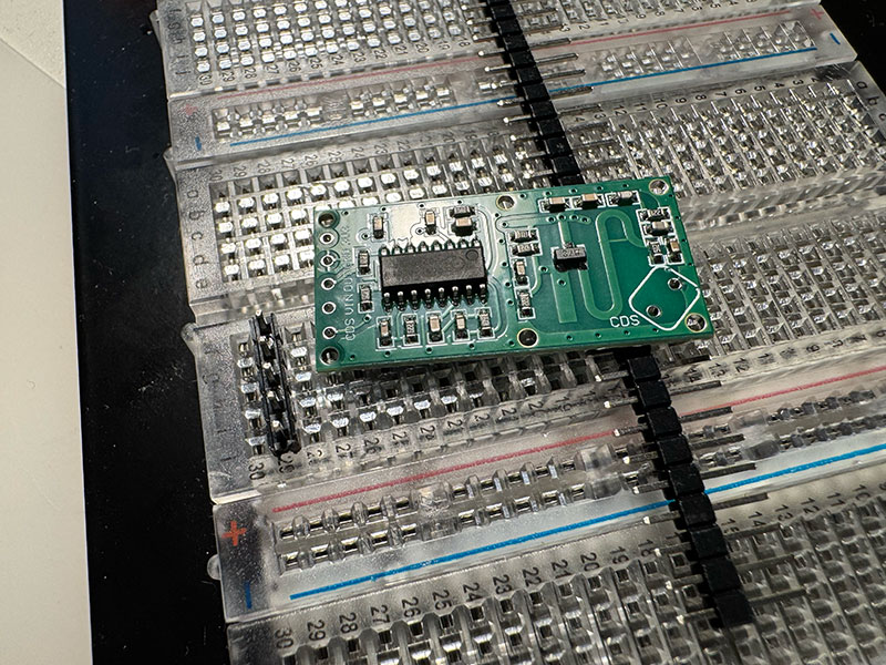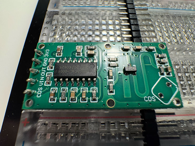 The RCWL-0516 microwave motion sensor was connected to the XIAO RP2040 using its digital output. The module was powered through the VIN pin using 5V, as it requires a higher voltage than the typical 3.3V logic level of the microcontroller.