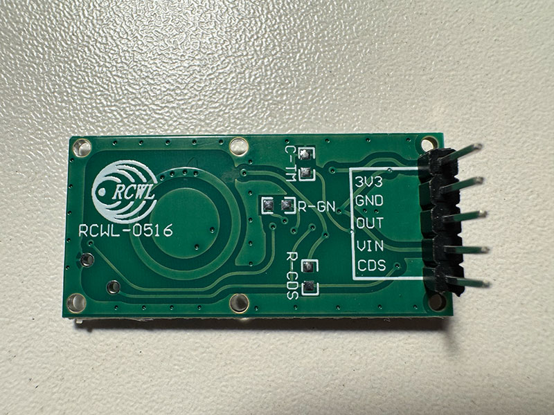 The RCWL-0516 is a microwave motion sensor based on Doppler radar. Instead of detecting heat like a PIR sensor, it works by emitting microwaves and analyzing changes in the reflected signal when movement occurs in front of the module. One of its most distinctive features is that it does not have a visible sensing element, since the antenna is integrated directly into the PCB itself.