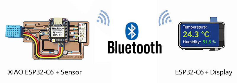 To fulfill the requirement of sending a message between two projects, I decided to use Bluetooth Low Energy (BLE) as the communication method, connecting a Seeed Studio XIAO ESP32-C6 board to a smartphone.