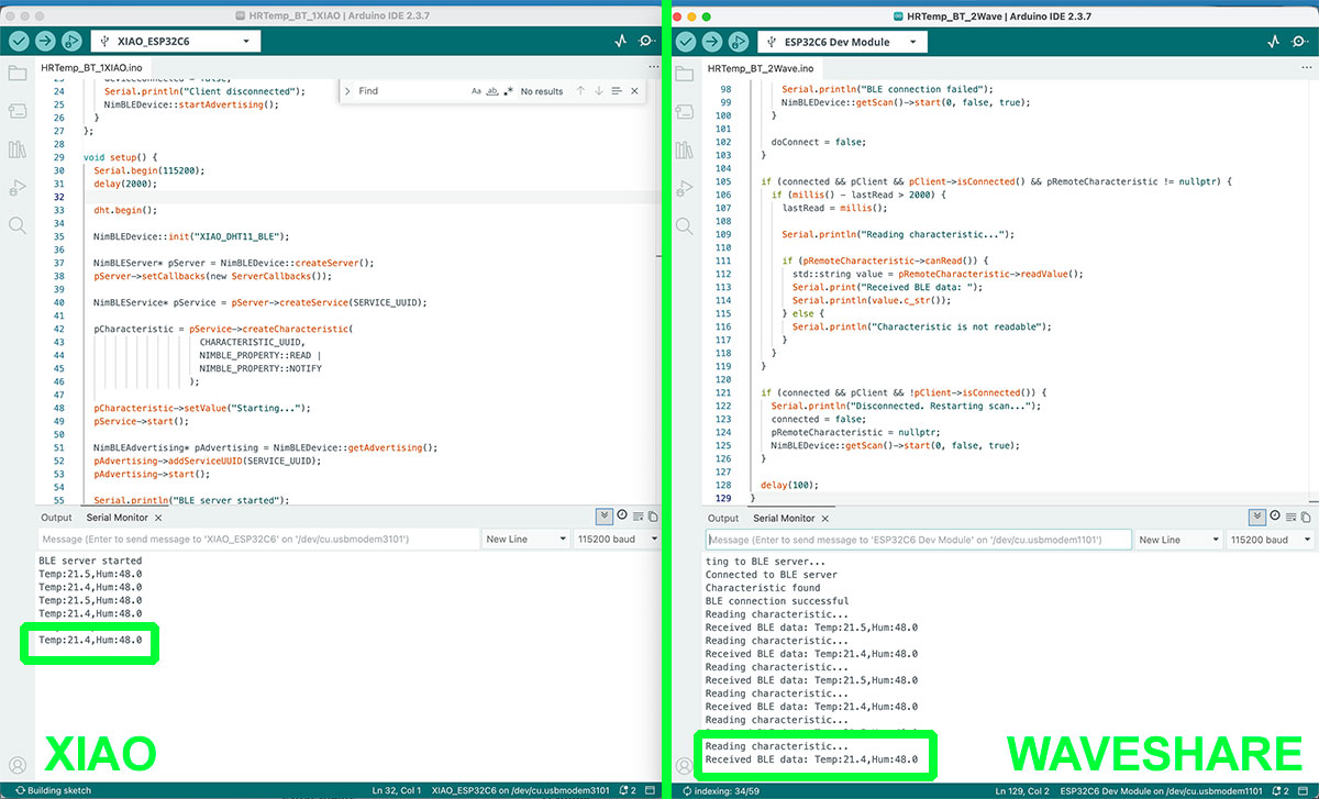 The first step was to properly configure the environment in the Arduino IDE, selecting the XIAO ESP32-C6 board and the correct port. Then, I worked with the required BLE libraries such as BLEDevice, BLEUtils, and BLEServer, which allow creating and managing the Bluetooth server.
