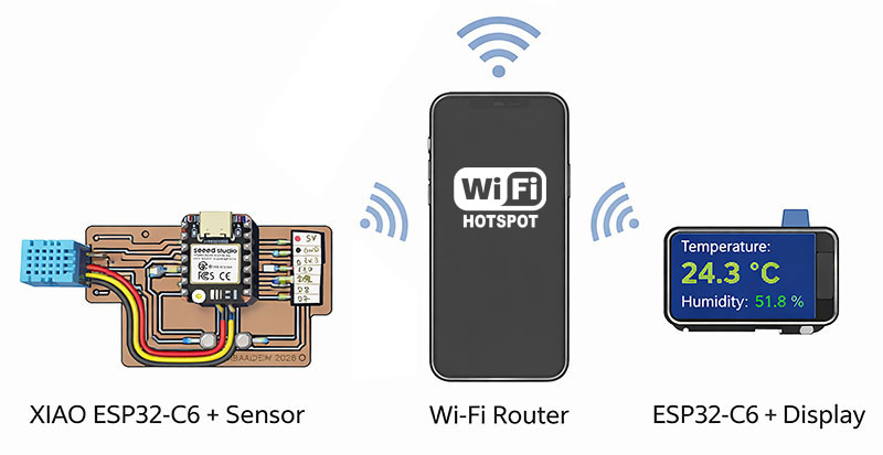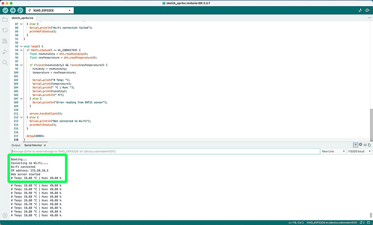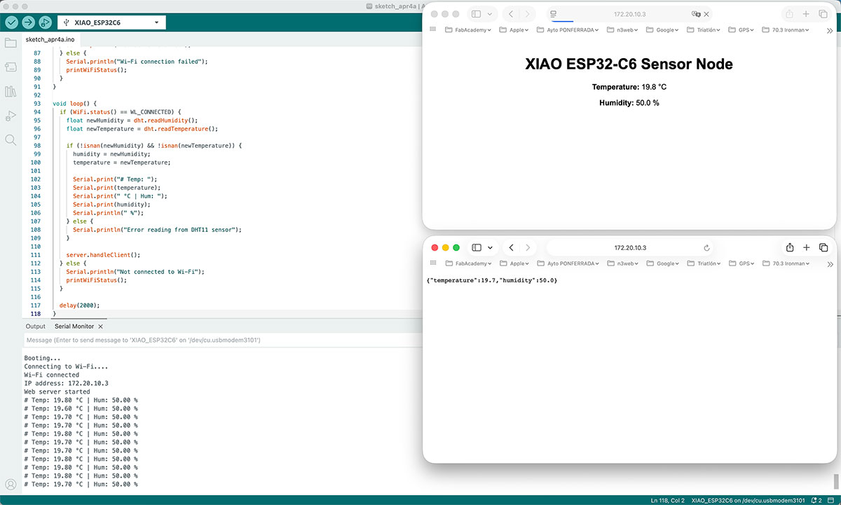 For this, I developed an Arduino sketch that turns the XIAO ESP32-C6 into a Wi-Fi access point and, at the same time, a web server. This means the board creates its own wireless network, allowing me to connect directly from a smartphone or computer without relying on an external network.