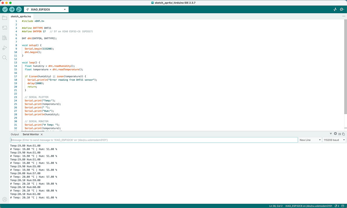 When starting to work with ESP32 microcontrollers, it is necessary to configure them in the development environment first. In my case, I followed the official Seeed Studio tutorial for the XIAO ESP32-C6 ↗️.