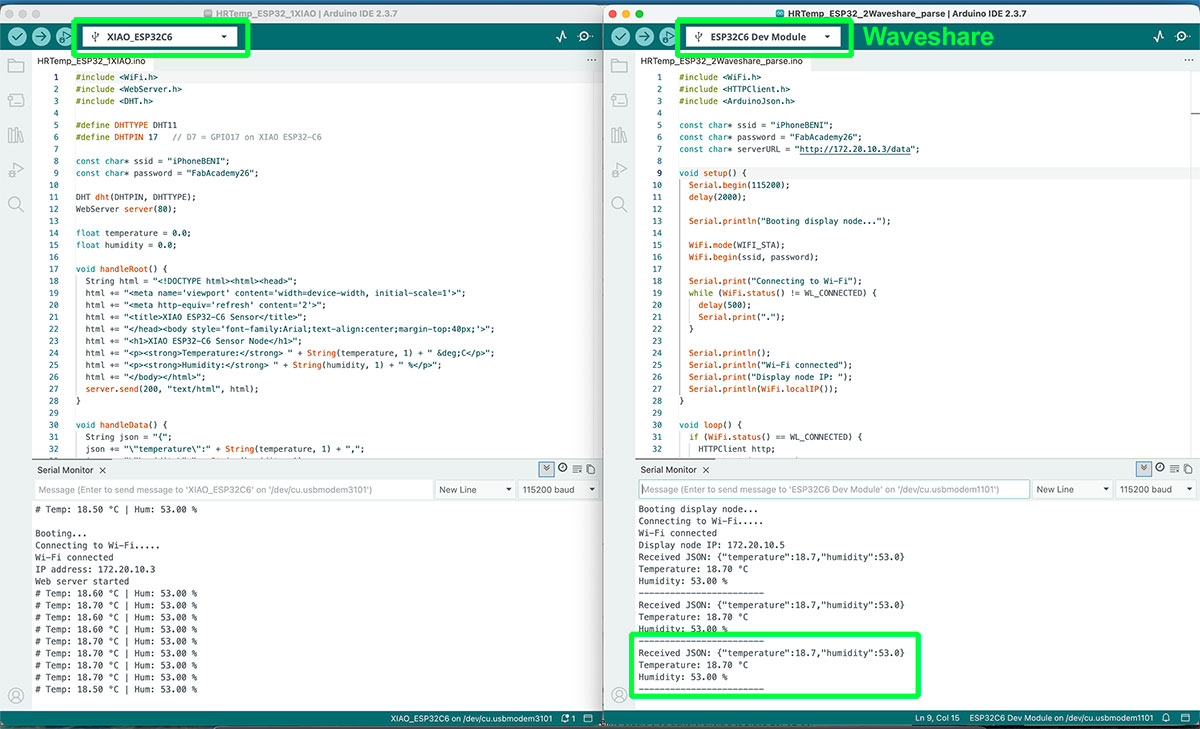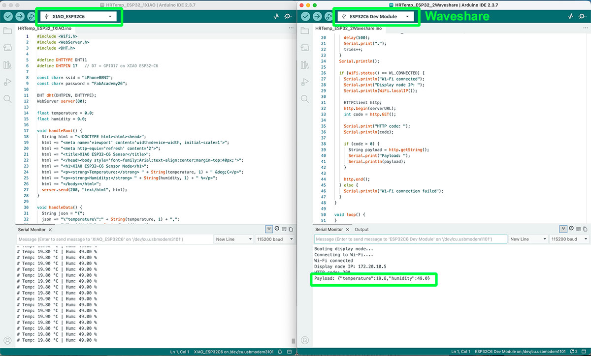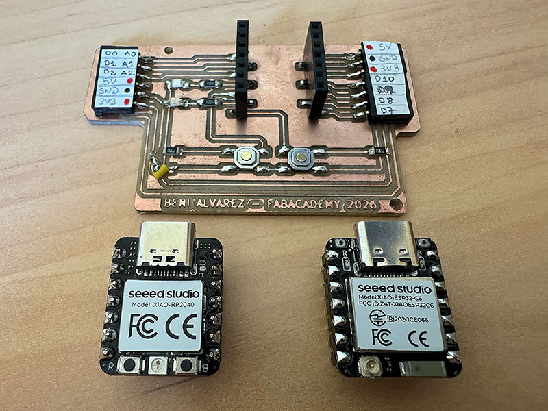 As mentioned before, one of the advantages of my PCB design is that I can swap the XIAO microcontroller, moving from the RP2040, which I have been using so far, to the ESP32-C6, which includes wireless connectivity. This change is essential in order to properly approach this week’s networking assignments.