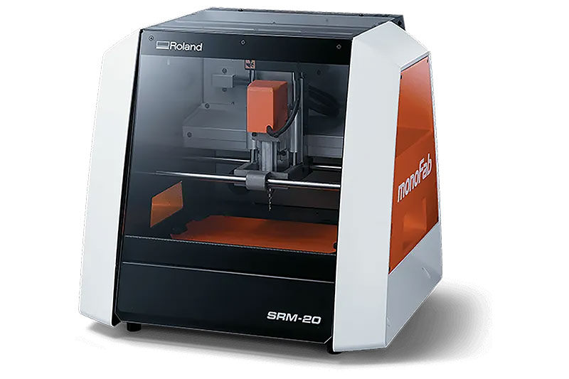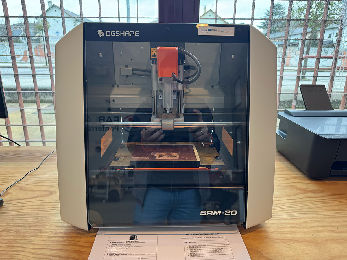 The Roland monoFab SRM-20 is a compact 3-axis CNC milling machine designed for prototyping, small machining jobs, and detailed work. Compared with a large CNC machine, the focus here is not on removing large amounts of material or working on big boards, but on achieving precision, cleanliness, and control in small parts, molds, engravings, and especially, in a Fab Lab environment, PCBs and small-format components.