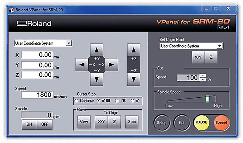 With the machine prepared, the next step is to define the milling origin using the Roland VPanel software.