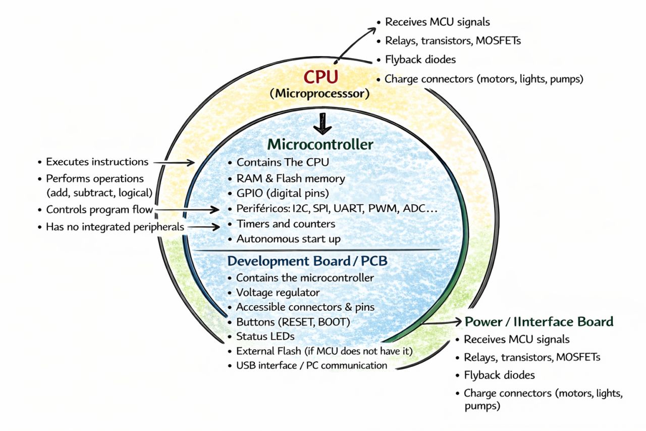 This differentiation between the different layers of components was a real discovery for me, since I had never worked at this level of detail before. I had always thought that the large black chip in the middle of a power board was already “the processor”.