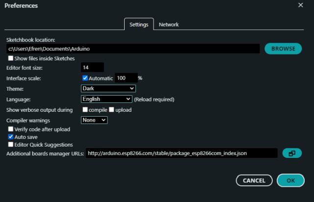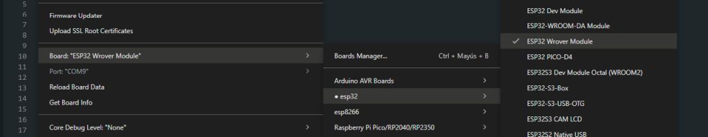 For the Wrover, I only needed to install it from the Arduino IDE board manager database, but for the Wemos, just as happened with the RP2040, I had to import the board definitions manually, in this case from the website Luis Llamas