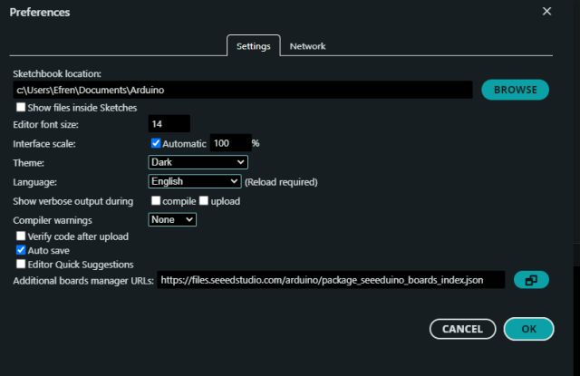 The Wio Terminal board also had to be downloaded from the internet.