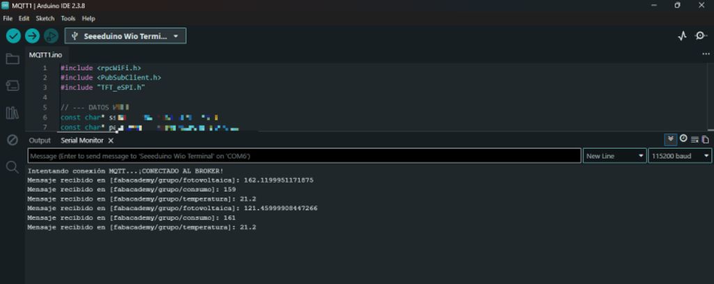 Once programmed and transmitting, I was able to verify how the real data from my colleague's photovoltaic installation and the "fake" data I was sending were being superimposed on the Wio Terminal. Just like me, anyone subscribed to the broker would see Oscar's solar production generating 170W at midnight!!