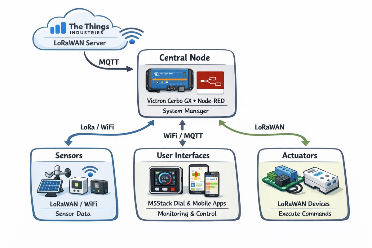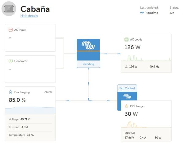 - The Victron Cerbo GX and Node-RED platform powered up correctly.