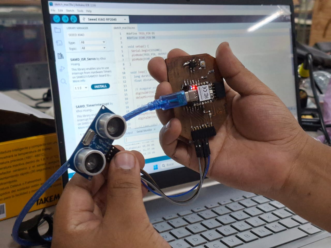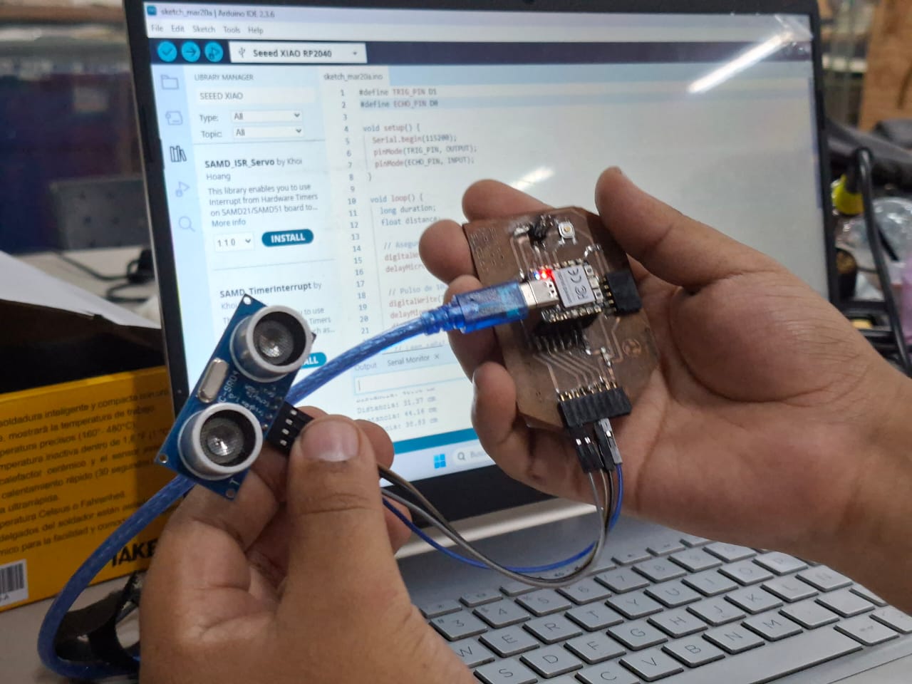 We programmed using Arduino IDE - Xiao RP 2040 and open serial monitor