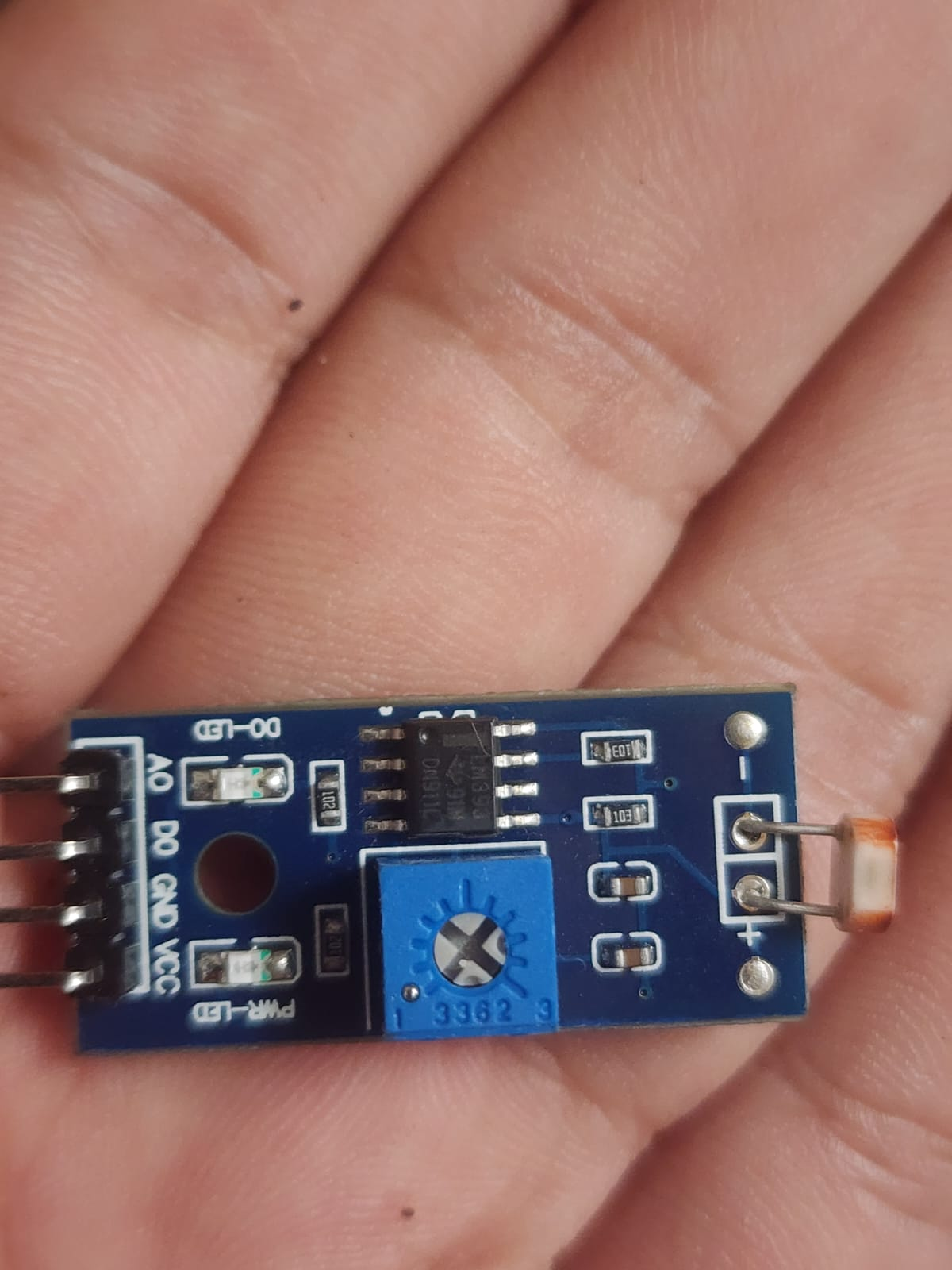 We connected the LM 393 photosensitive LDR as follows:
