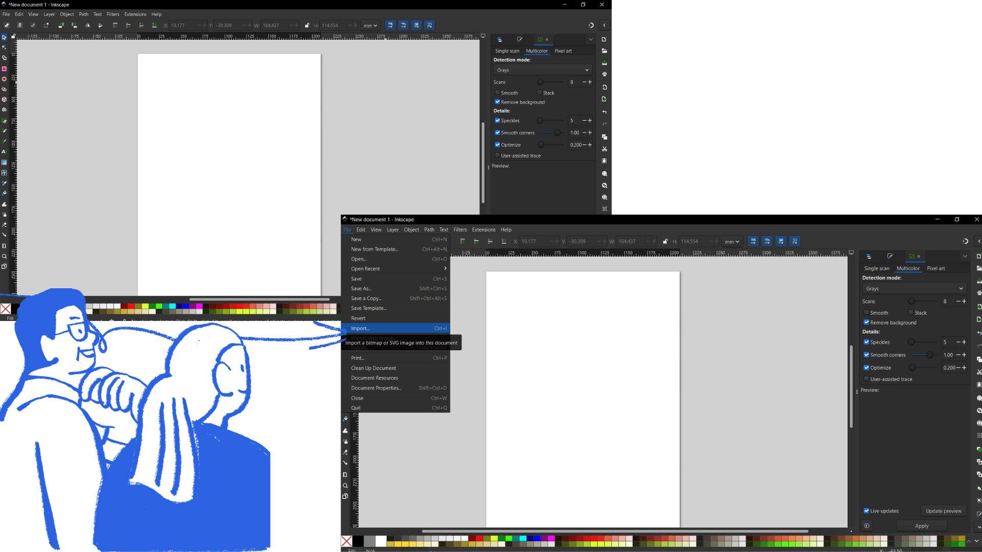 To start using Inkscape, a free and open-source vector design program, first visit the official website at https://inkscape.org/release and download the version for your operating system. After downloading, run the installer and follow the instructions to complete the installation. Once opened, familiarize yourself with the interface: the toolbar on the left contains selection, drawing, and text tools, the main canvas in the center is where you create your designs, and panels on the top and right allow you to adjust colors, layers, and object properties. To create your first design, open a new document via File → New, then use selection tools to move objects, shapes to draw rectangles, circles, and stars, freehand tools for custom curves, and the text tool to add editable text. Customize each object by adjusting fill and stroke colors, line thickness, and style, and organize your work using layers to control stacking order. When ready to save, choose File → Save As → SVG to keep it editable, or export to PNG for use online or in other programs. You can also explore combining objects with Path operations, applying filters and effects, or vectorizing imported raster images with Path → Trace Bitmap, allowing you to fully leverage Inkscape’s vector design capabilities while practicing and experimenting with different tools and techniques.