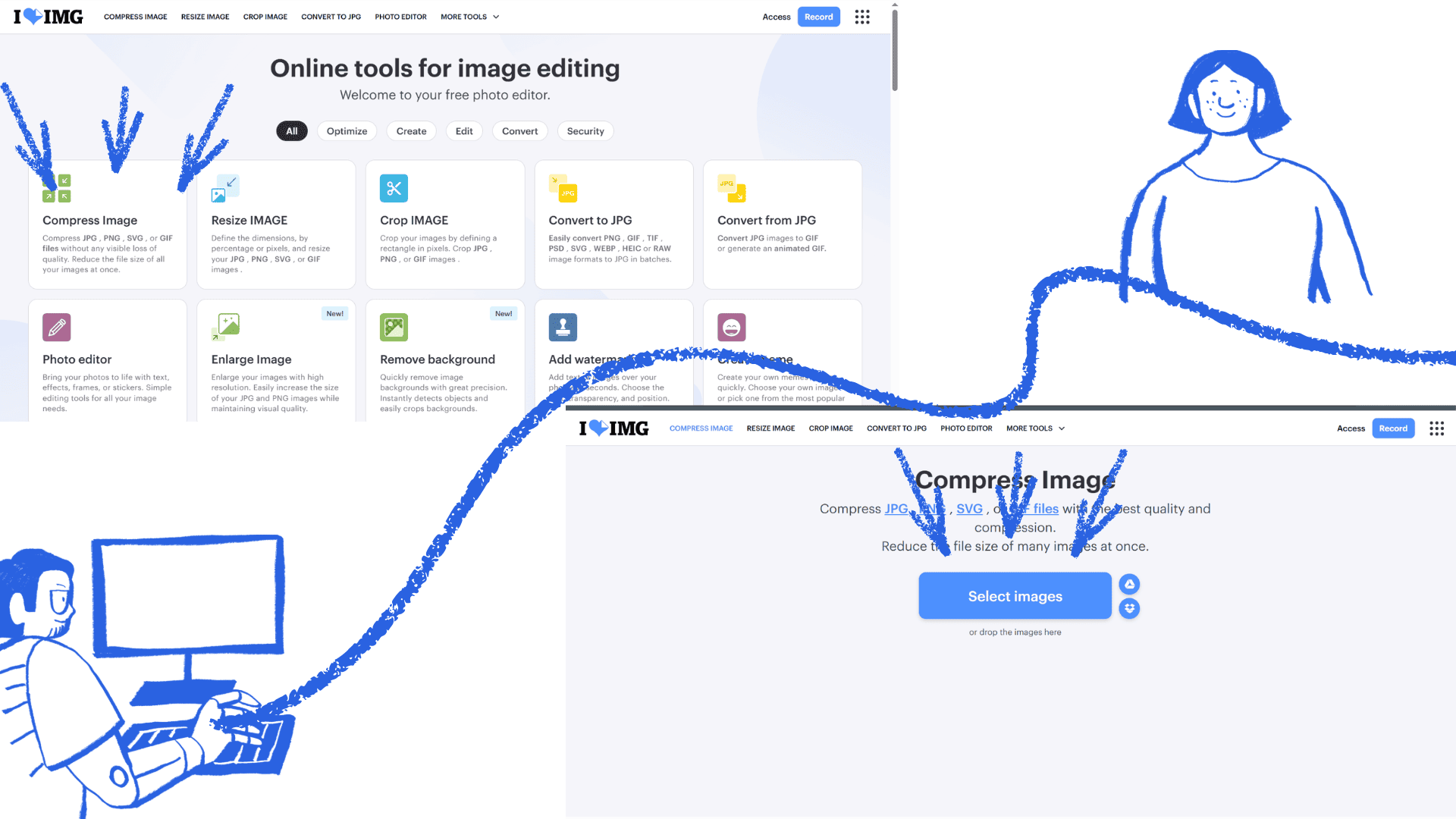 To compress an image using a search engine, first open your web browser and type something like "compress image online" into the search bar. Then select one of the websites from the search results. On the site, click "Select files" or "Upload image" to locate the file on your computer. Once you've chosen the image, the system will compress it automatically, or you can do so by clicking the compress button. Finally, download the compressed image to your computer.
