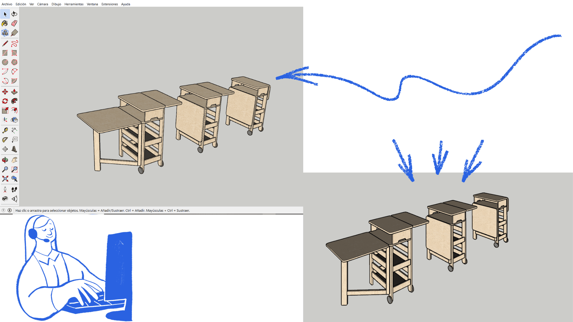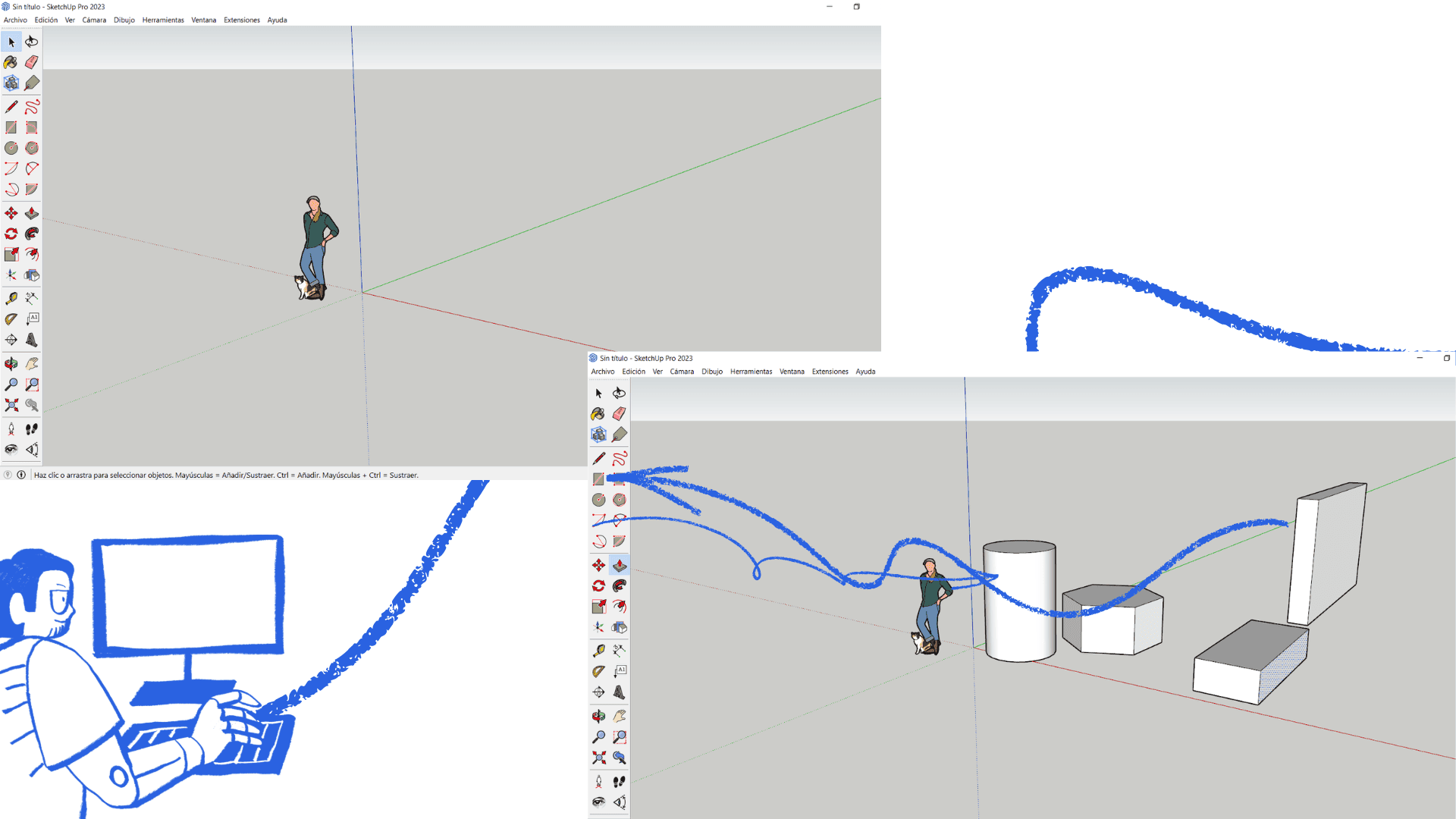 | SketchUp | Modelado 3D arquitectónico | ✔ Intermedio; dibujo libre, empujar/tirar, precisión espacial | Fácil–Media | Arquitectura, diseño interior, construcción |
