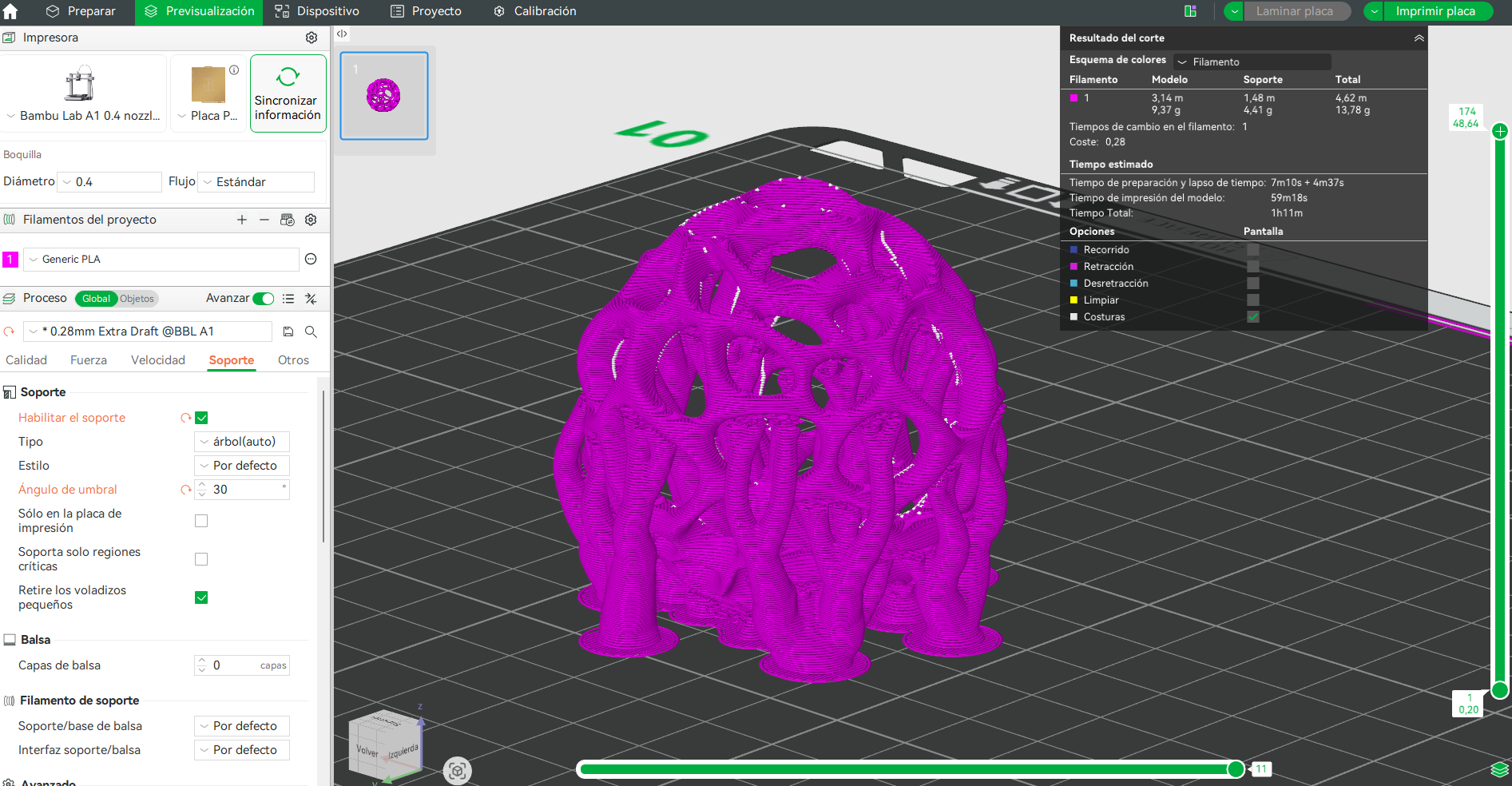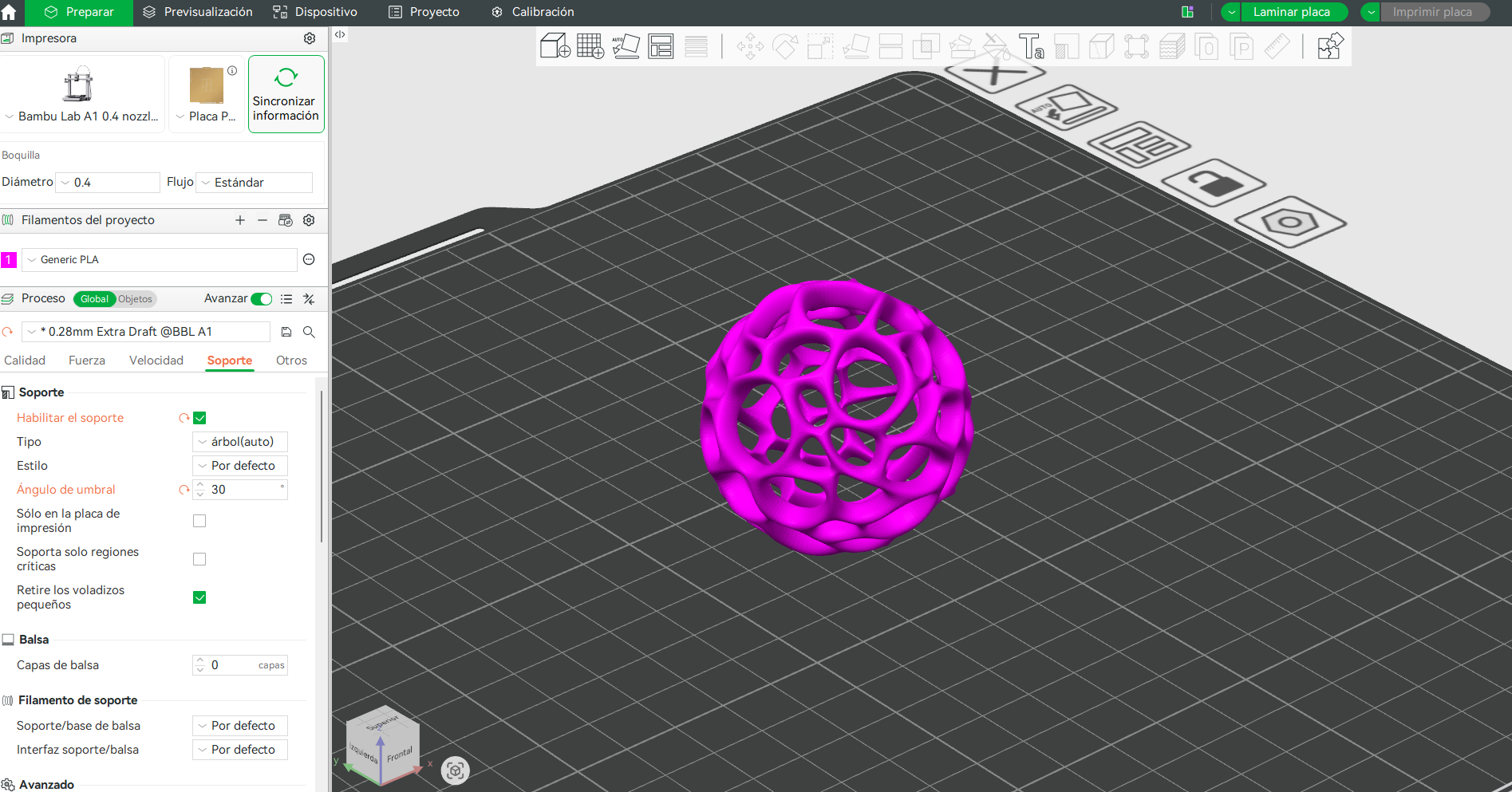 The final spherical Voronoi structure was printed using PLA on the Bambu Lab A1.