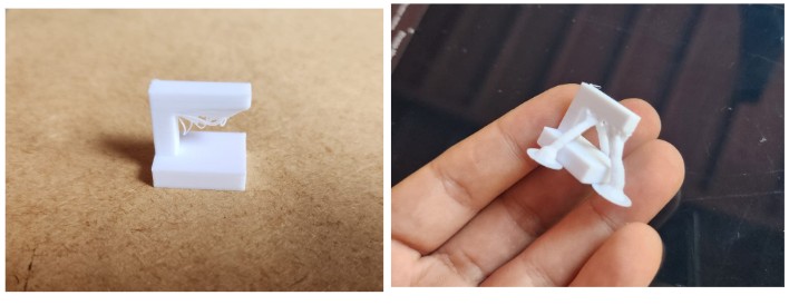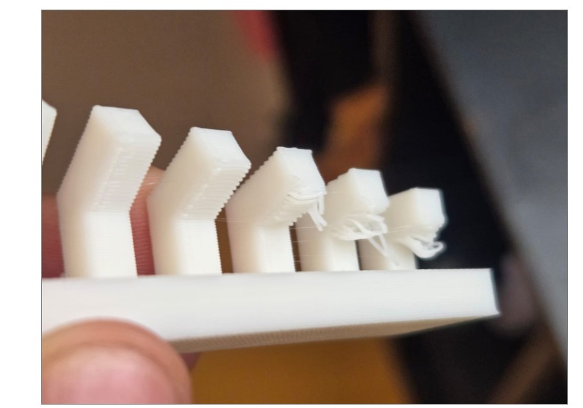 The printer achieved clean unsupported angles up to approximately 20°. Below this threshold, minor sagging was observed.