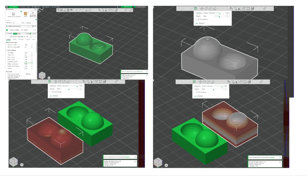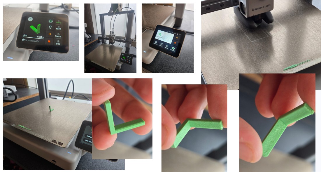 - Rocío: Overhang, angle test, tolerance verification, and infill density comparison.