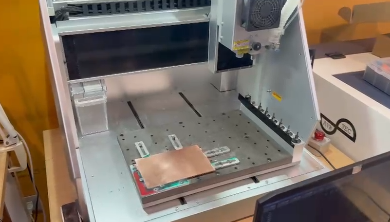 We configured the machine to perform a 5-point calibration, allowing it to detect variations in the surface level of the board. This is especially important because slight irregularities in the material can affect cutting depth and trace quality.