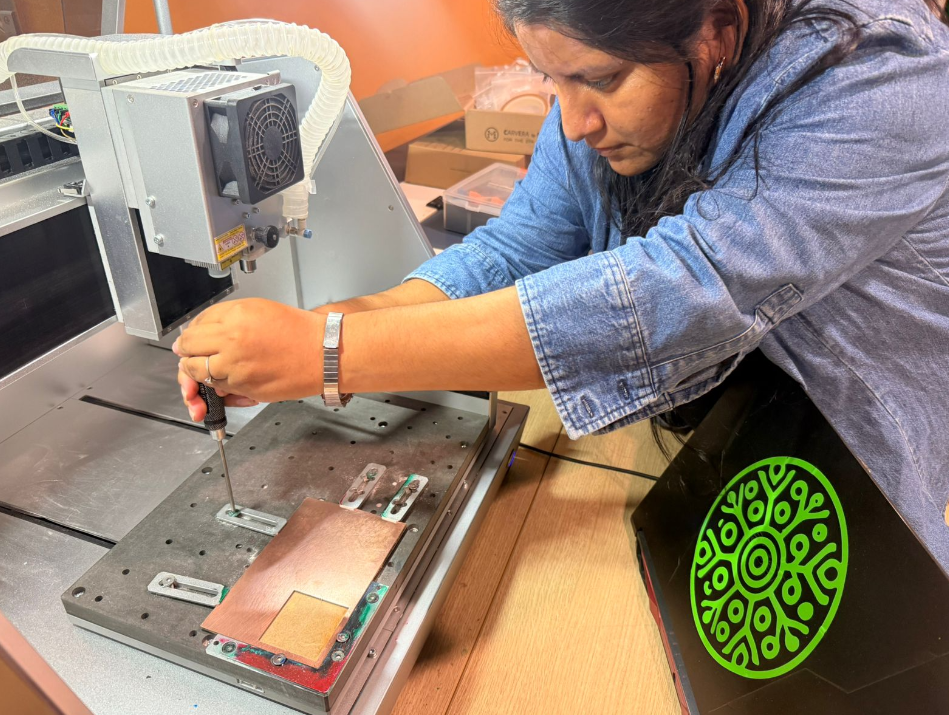 Once the PCB design files were prepared and converted into the correct format, the next step was to fabricate the boards using a CNC milling machine available at FabLab ESAN. This process involves subtractive manufacturing, where a rotating cutting tool removes copper from the board to define the circuit traces.