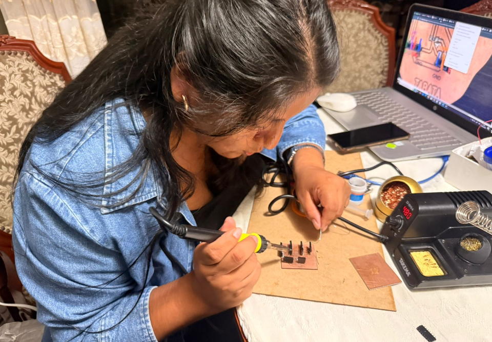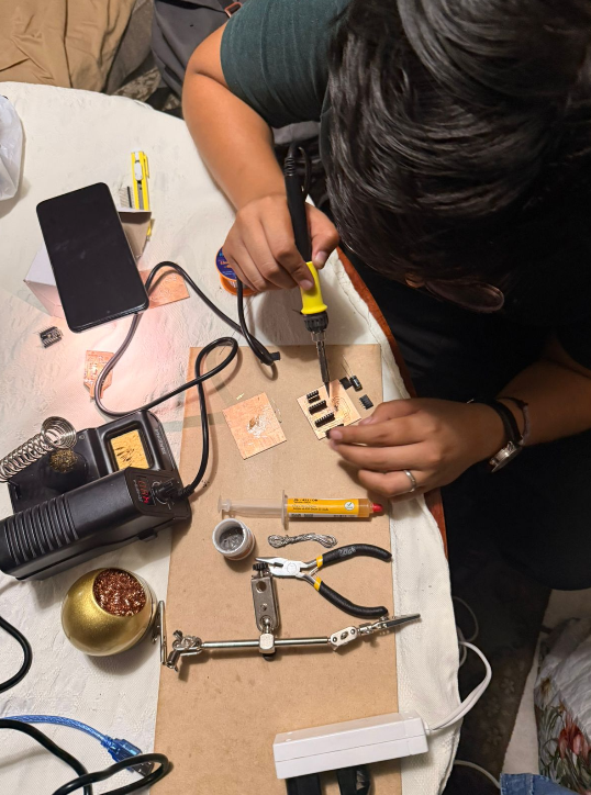 Since the FabLab facilities were closing, we needed to find an alternative space to continue working. With the support of Carmen, we relocated to her brother’s apartment, where we set up a temporary workspace to complete the soldering and testing process.