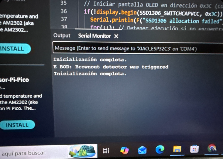 After uploading the program to the microcontroller, the system initialized correctly, but no sensor data was being received. The OLED display turned on, indicating that the board had power, but the readings remained empty.