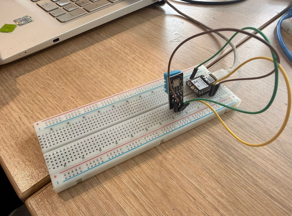 Breadboard setup with Xiao ESP32C3 and sensors.