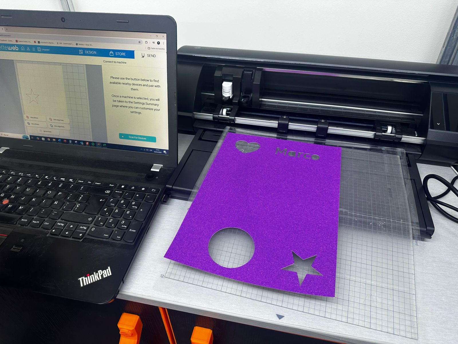 Once configured, the file was sent to the machine, and the cutter followed the vector paths to produce the final shapes.