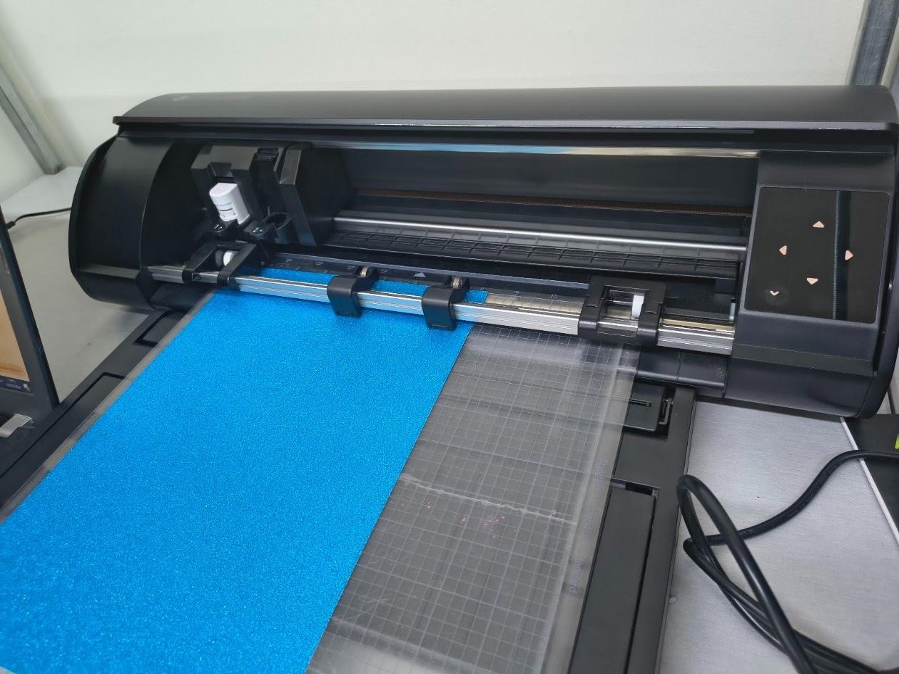 The machine used was a Silhouette vinyl cutter. This device operates using a small blade that moves along the X and Y axes,