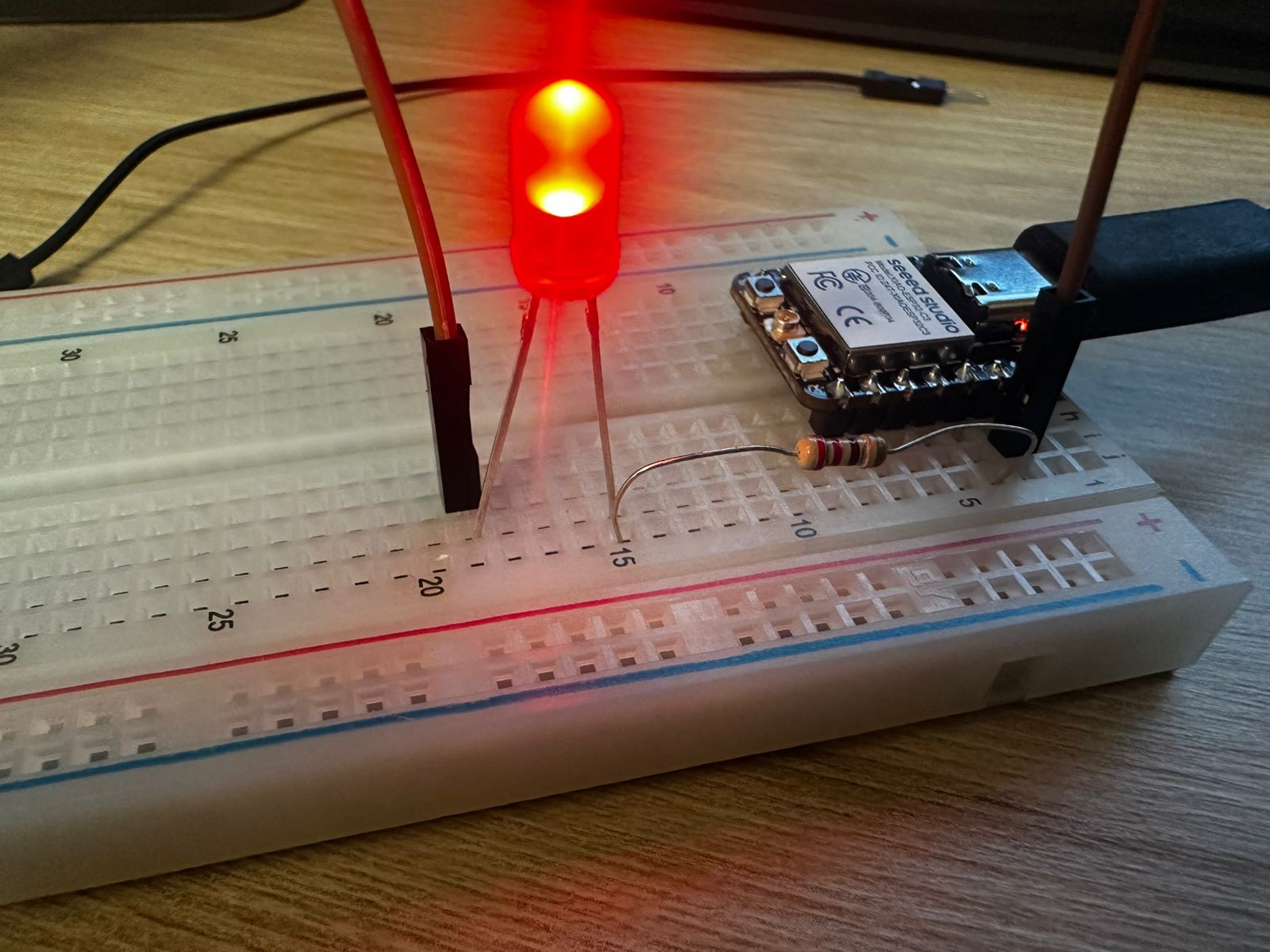 - A digital pin from the XIAO was connected to a current-limiting resistor.