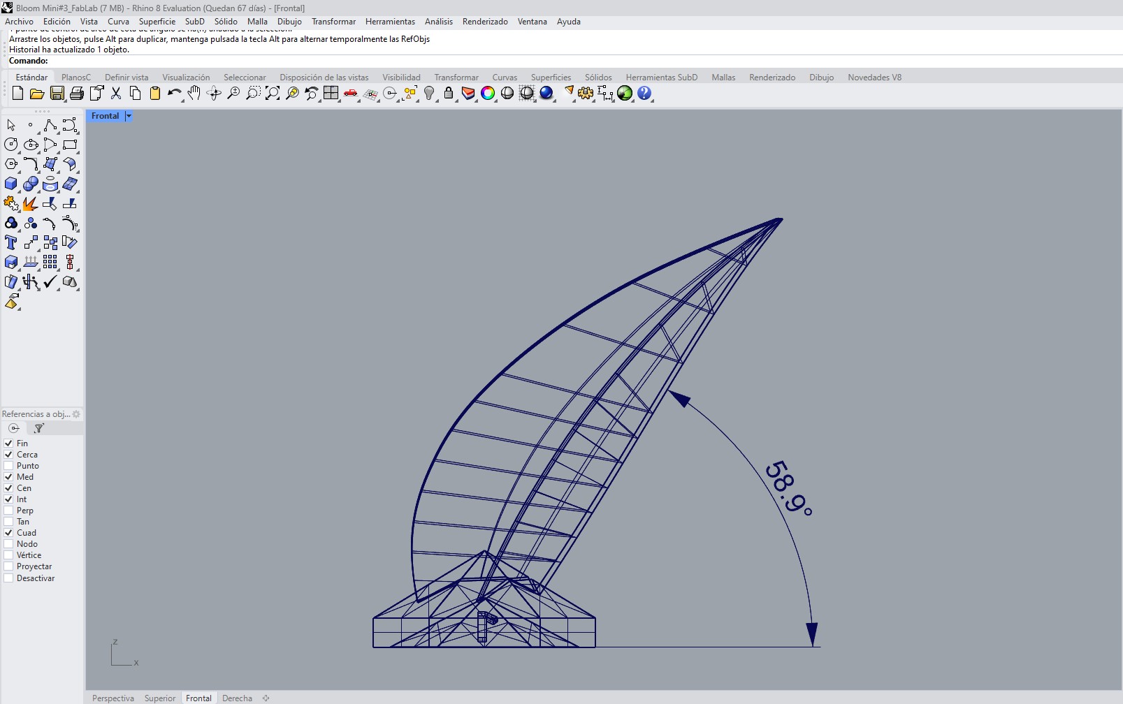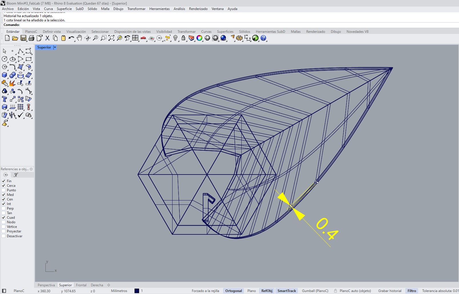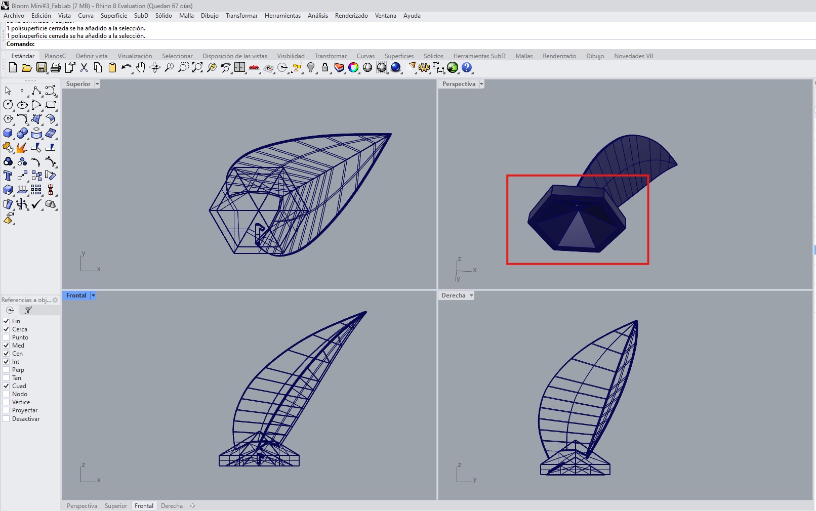 The intention was to obtain a shape similar to a leaf, with smooth and continuous curves, so that after printing it could be thermally deformed into a more organic final form.