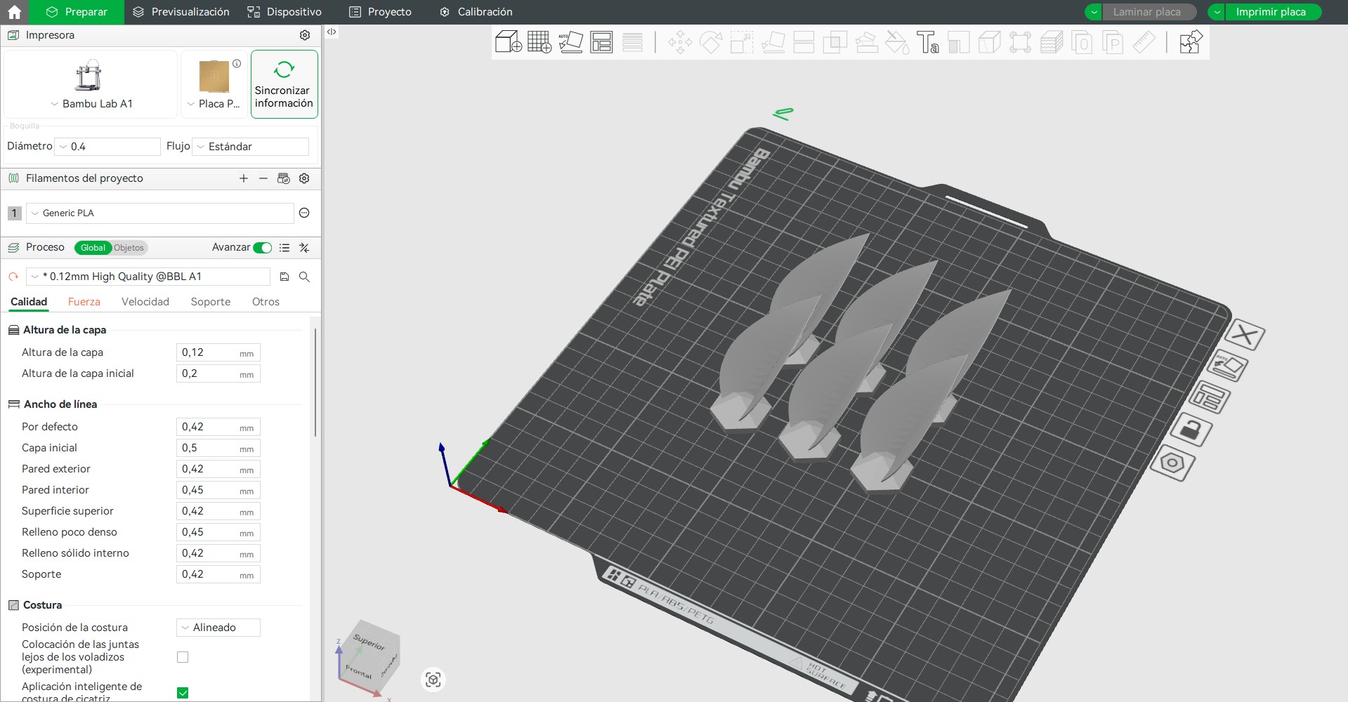 Once the 3D model was completed, it was exported in STL format and imported into Bambu Studio, the slicing software used to generate the printing toolpaths.