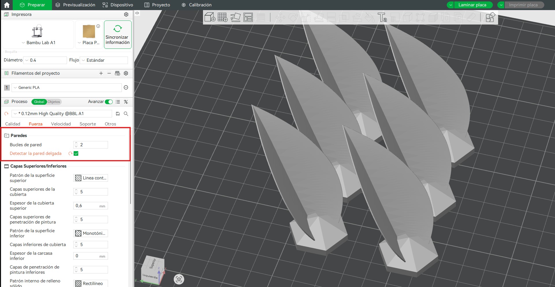 After importing the STL file into Bambu Studio, an initial verification of the model was carried out to ensure that it was ready for fabrication. This included: