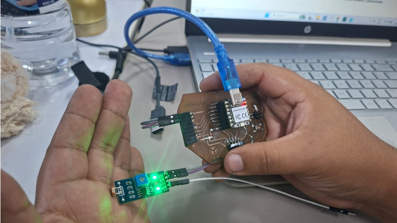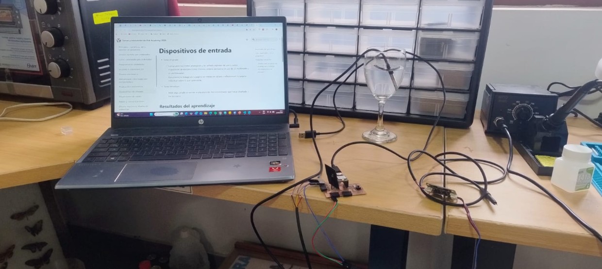 This week I connected two input devices to my board, which I developed in week 8. You can review the information here: https://fabacademy.org/2026/labs/lima/students/rociomilagros-maravi/week-8.html