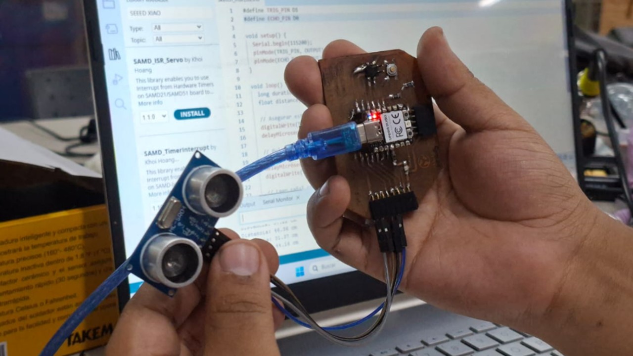 Later, we programmed the board in Arduino IDE and observed the distance values in the serial monitor. This allowed us to verify the correct operation of the sensor and validate the input signal.