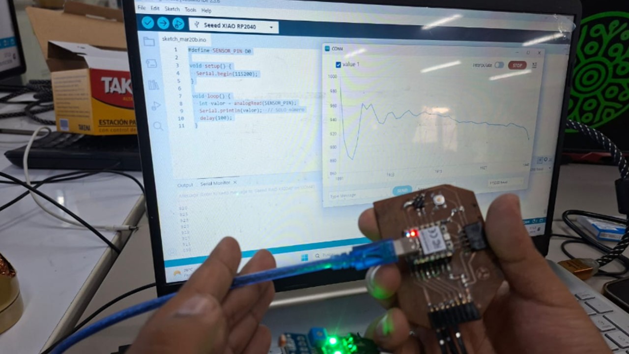 Then we programmed the XIAO RP2040 to read analog values and visualize the data in the serial monitor.