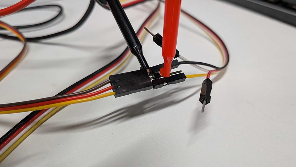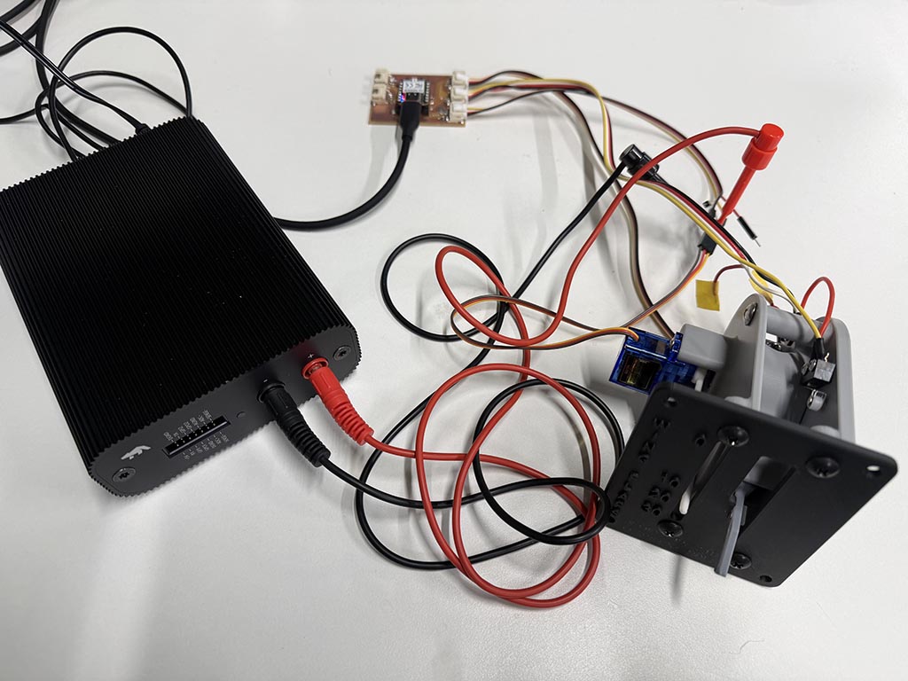 We changed wiring between servo motor and microcontroller board. Removed Vdd wire from microcontroller board and connected positive wire from Otii Arc. Kept GND connection and cliped GND wire from Otii Arc.