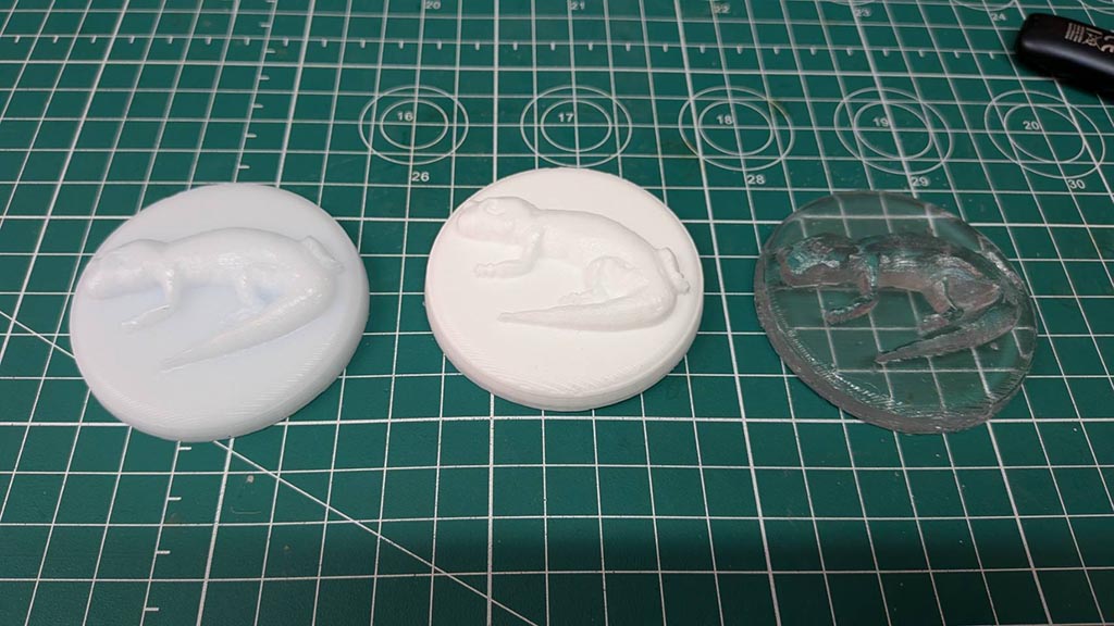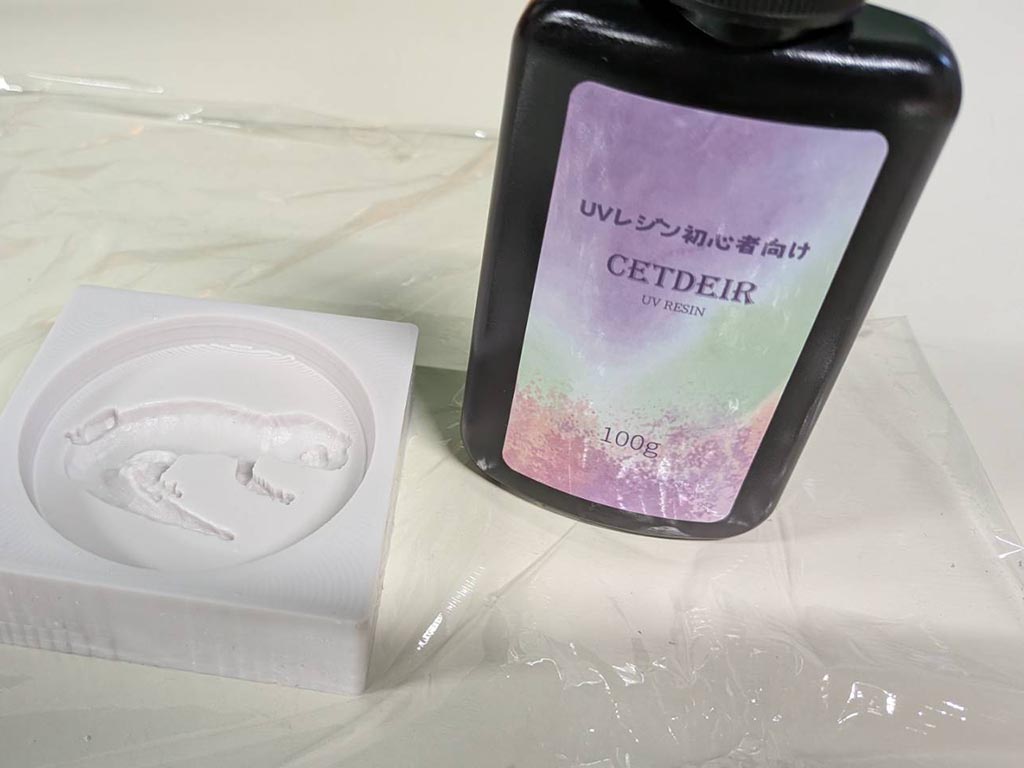 Bara’s mold is single sided, so his mold is suitable to try all three kind id resin. From left, epoxy, polyurethane, UV.