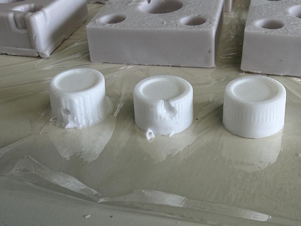 Because Yoshi printed with 0.08mm layer height, we’re happy with the quality of the 3D printed mold except traces on top layer. 3D printing mold is good at reproduce details. .1 mm things are hard to reproduce with milling.